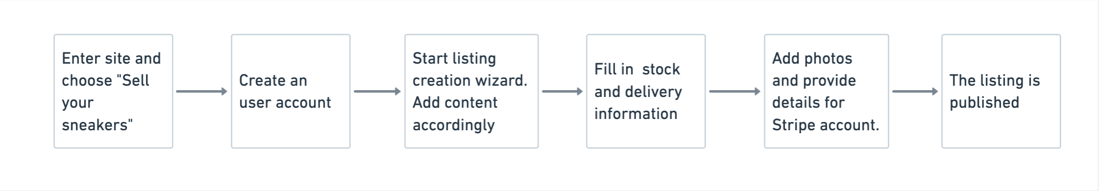 Sneakertime, as any typical marketplace, has three distinct user journeys: