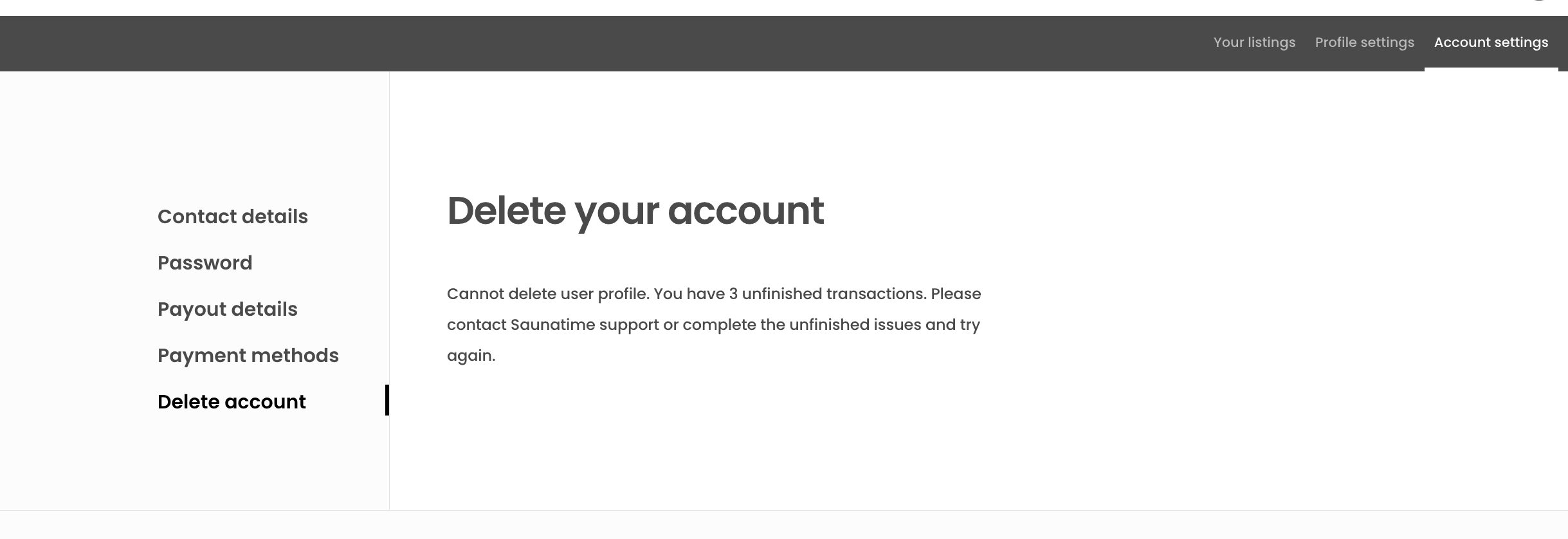 And that's it! Depending on your marketplace needs, you can build further steps into the process before you allow the user to delete their own account.