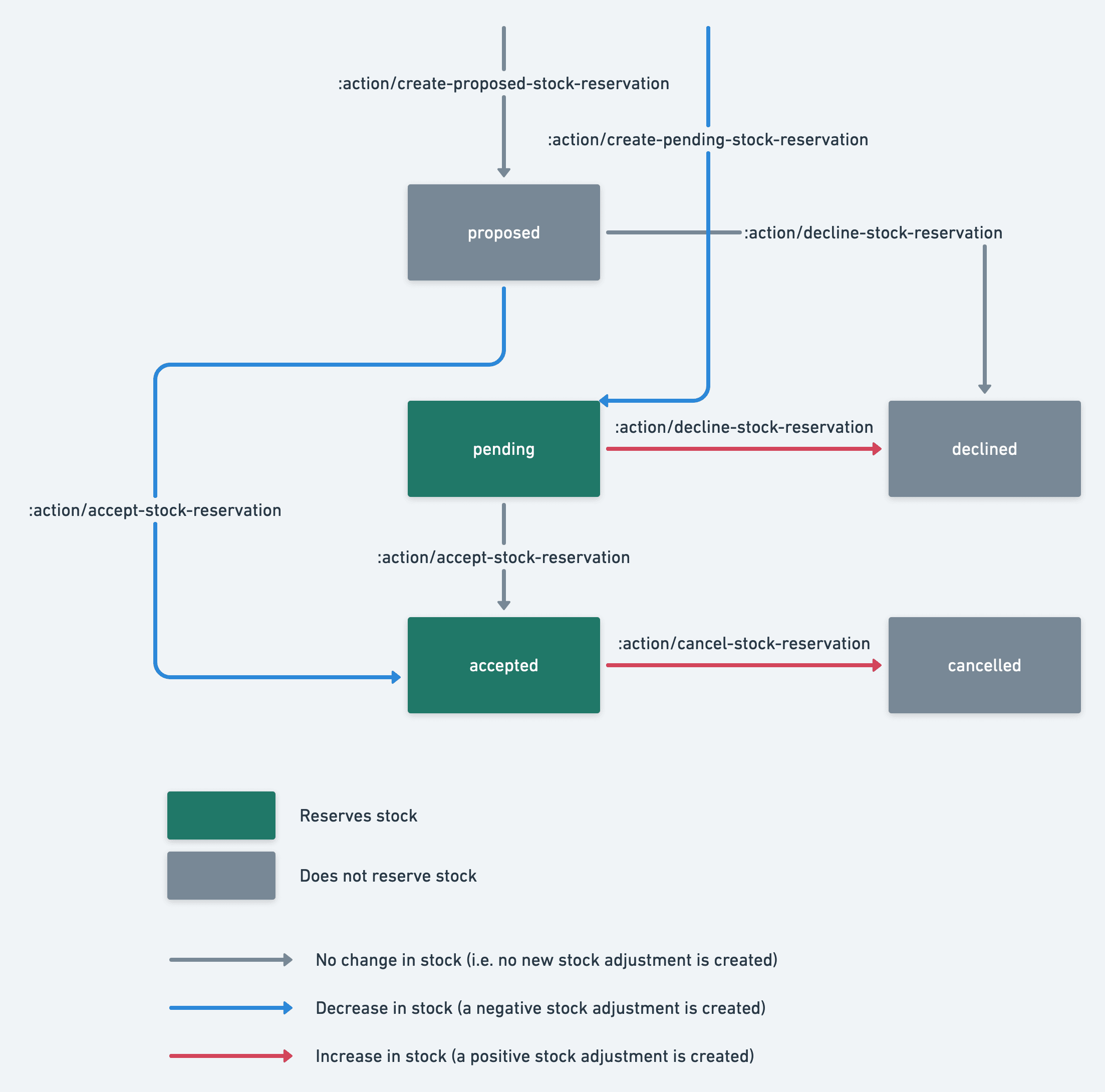 stock reservations in the proposed, cancelled or declined states