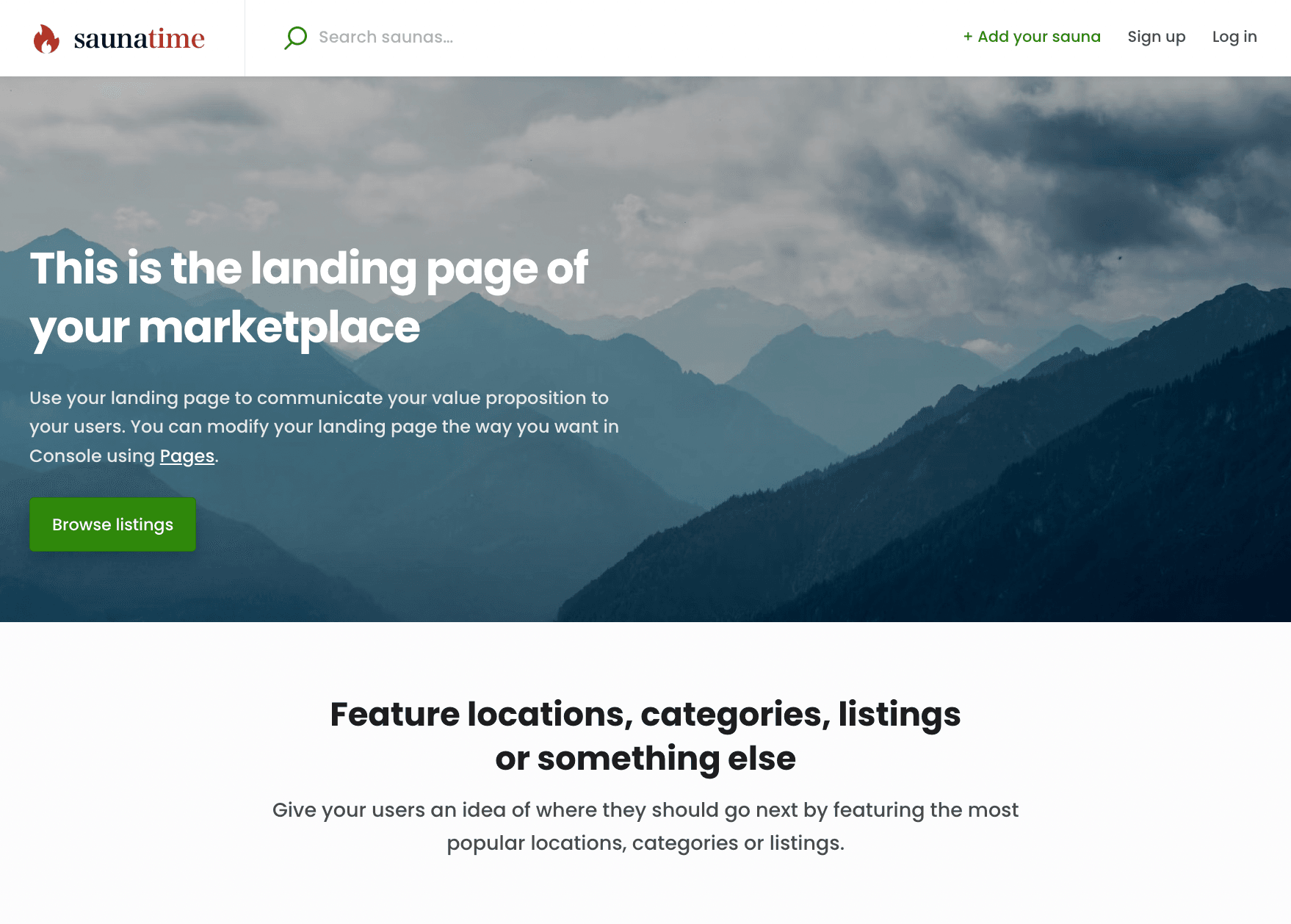 Custom styling is a good starting point to introduce your own branding and remove design choices made for example marketplace, Saunatime.